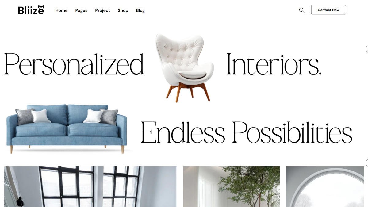Bliize is a flexible WordPress theme for architecture, construction, interior design, and real estate sites, featuring 15 home styles, Elementor builder, GSAP animations, and responsive layouts.
