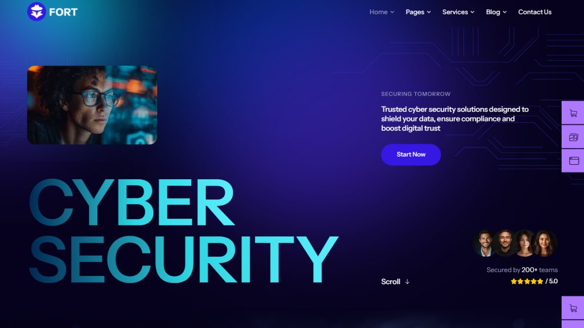 Fort is a bold, responsive WordPress theme for cyber security firms and data protection services, featuring Elementor builder, WooCommerce compatibility, and premade modules for services and teams.